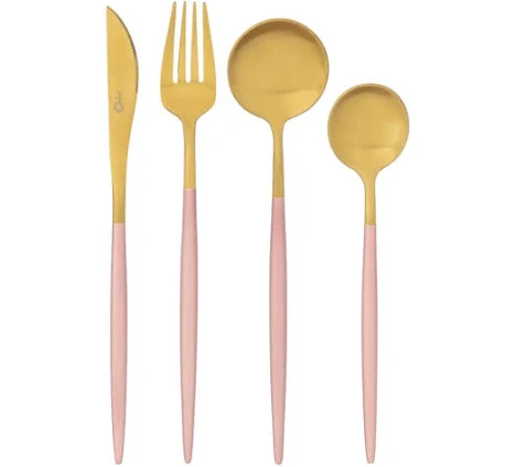 Talheres Douradas com Cabo Rosa